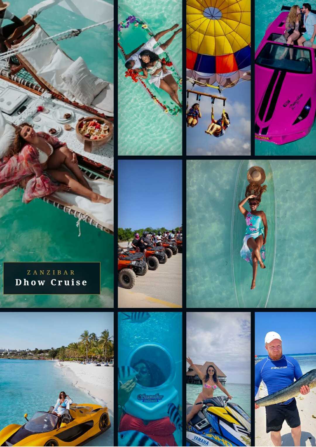 dhow cruises, luxury beach activities, and mainland Tanzania wildlife safaris.